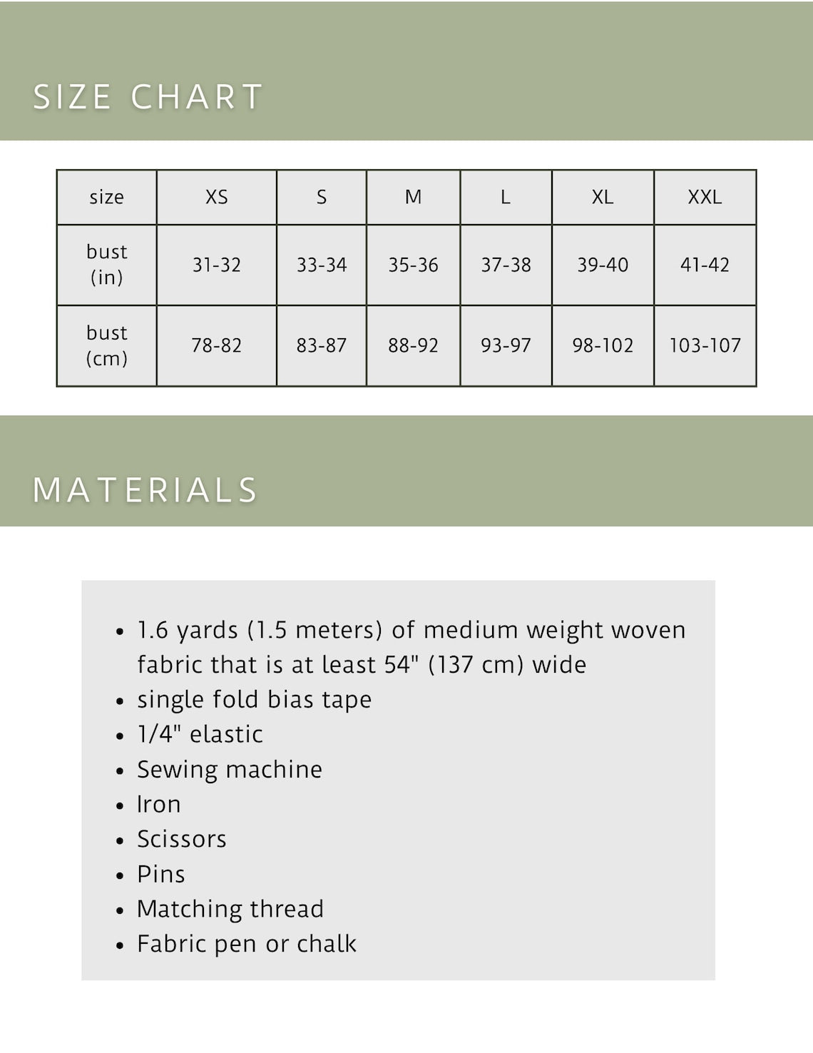 - 1.6 yards (1.5 m) medium weight woven fabric, ≥54" (137 cm) wide